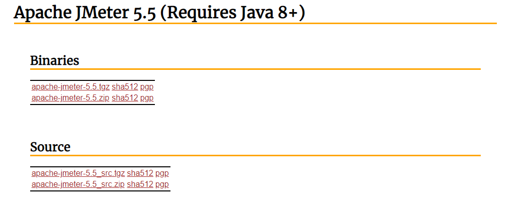 여기서 Binaries 의 "apache-jmeter-5.5zip" 을 다운로드한다.